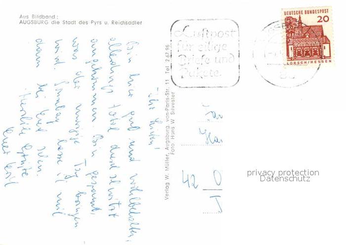 72772480 alte Postkarte Augsburg Rathaus und Perlach bei Nacht postalisch gelaufen Erhaltung siehe scans [WerneD78] KatCode: 11110009761000