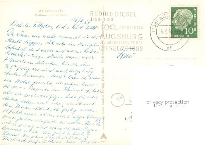 73852262 alte Postkarte Augsburg Rathaus und Perlach postalisch gelaufen Erhaltung siehe scans [FriedD77] KatCode: 11110009761000