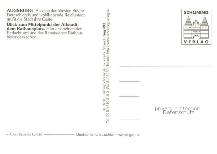 73010339 Augsburg Rathausplatz Perlachturm Renaissance Rathaus Fliegeraufnahme postalisch nicht gelaufen Erhaltung siehe scans [WerneD78] KatCode: 11110009761000