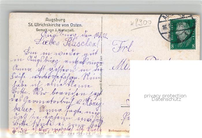 42958876 alte Postkarte Augsburg Sankt Ulrichskirche von Osten postalisch gelaufen Erhaltung siehe scans [AndreD76] KatCode: 11110009761000