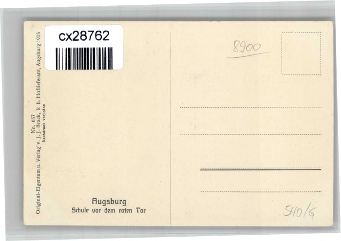 30910176 Augsburg Schule Roten Tor postalisch nicht gelaufen KatCode: 11110009761000
