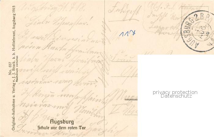 73801395 alte Postkarte Augsburg Schule vor dem roten Tor postalisch gelaufen Feldpost – Stempel Erhaltung siehe scans [FriedD77] KatCode: 11110009761000