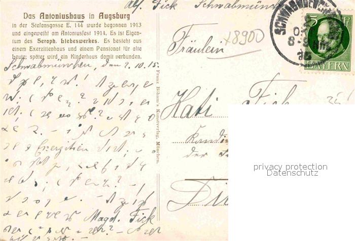 42727550 alte Postkarte Augsburg St. Antoniushaus postalisch gelaufen Erhaltung siehe scans [NatalD47] KatCode: 11110009761000