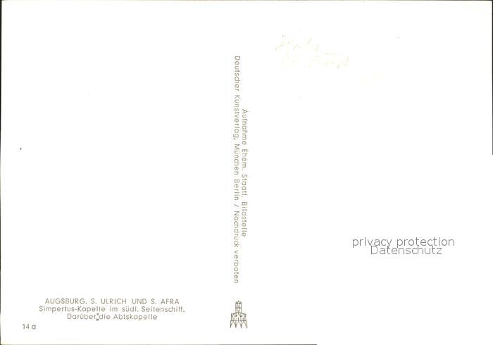 72200995 Augsburg St Ulrich und St Afra Simpertus Kapelle im suedl Seitenschiff mit Abtskapelle postalisch nicht gelaufen Erhaltung siehe scans KatCode: 11110009761000
