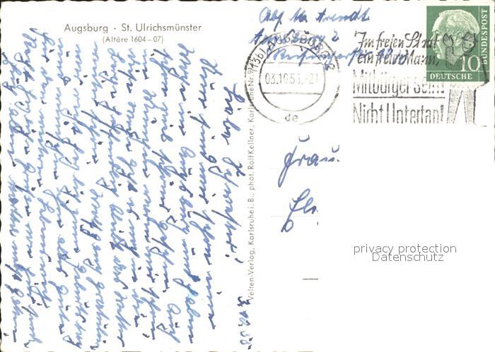 72321285 alte Postkarte Augsburg St Ulrichsmuenster Altaere postalisch gelaufen Erhaltung siehe scans KatCode: 11110009761000