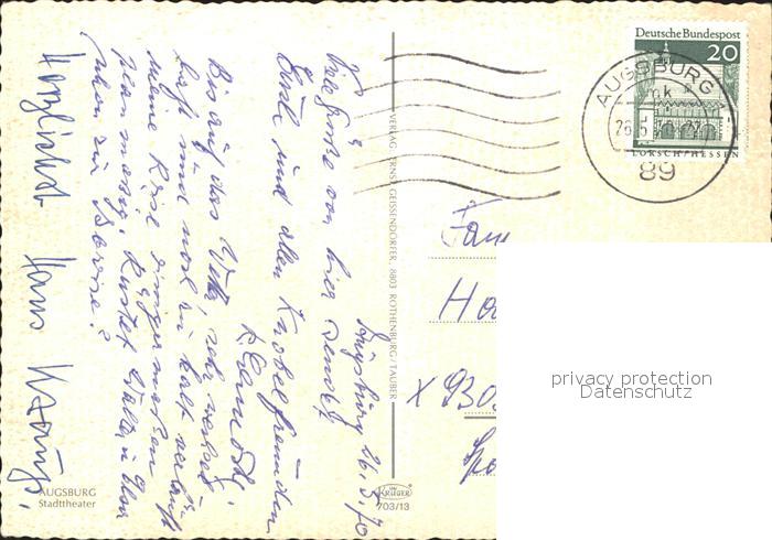 72375231 alte Postkarte Augsburg Stadttheater postalisch gelaufen Erhaltung siehe scans KatCode: 11110009761000