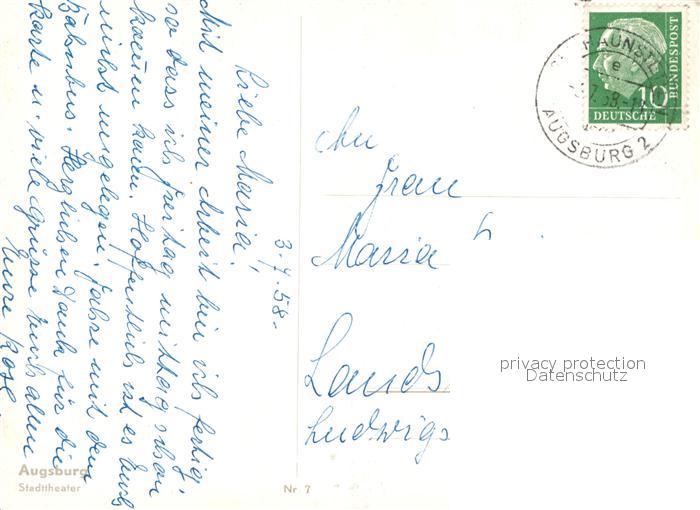 72945687 alte Postkarte Augsburg Stadttheater postalisch gelaufen Erhaltung siehe scans [FriedD77] KatCode: 11110009761000