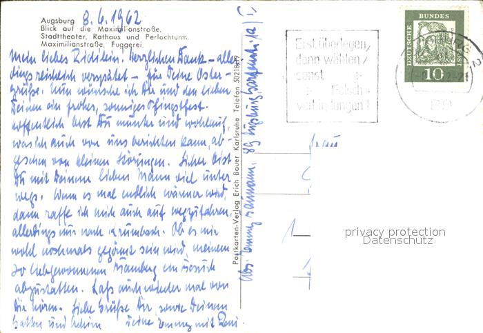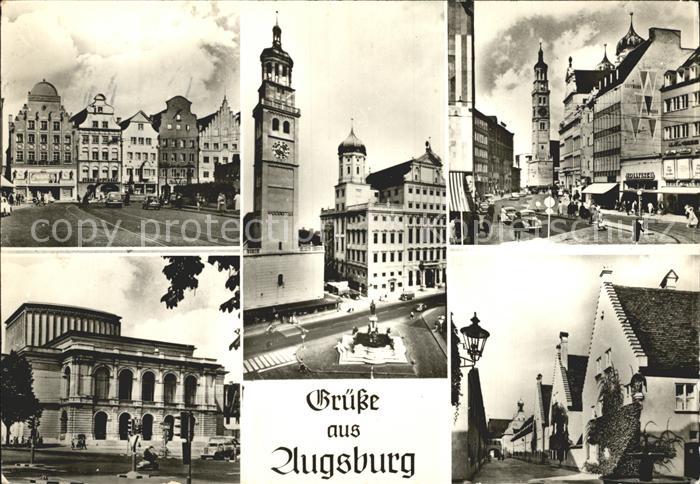 72217838 alte Postkarte Augsburg Stadttheater Maximilianstrasse Rathaus postalisch gelaufen Erhaltung siehe scans KatCode: 11110009761000