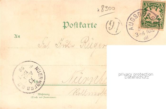 42963629 alte Postkarte Augsburg Untere Maximilianstrasse Theater Herkulesbrunnen Zeughaus postalisch gelaufen Erhaltung siehe scans [KathaD81] KatCode: 11110009761000
