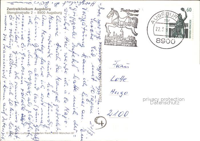 72071733 alte Postkarte Augsburg Zentralklinikum Fliegeraufnahme postalisch gelaufen Erhaltung siehe scans KatCode: 11110009761000