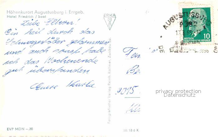 72699781 alte Postkarte Augustusburg Hotel Friedrich Saal postalisch gelaufen Erhaltung siehe scans [LiesaD40] KatCode: 11110014177010