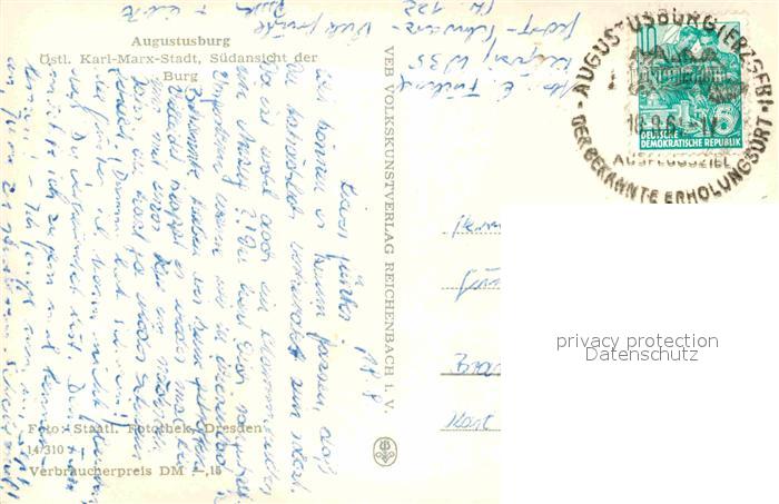 72827288 alte Postkarte Augustusburg Karl Marx Stadt Suedseite der Burg postalisch gelaufen Erhaltung siehe scans [LiesaD40] KatCode: 11110014177010