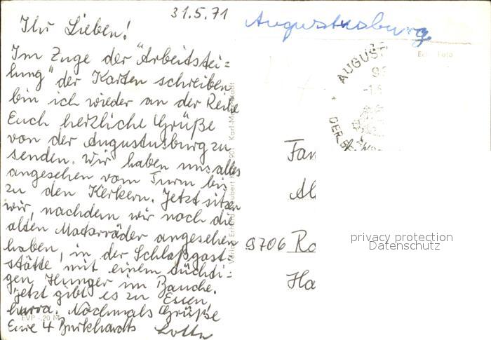 72343449 alte Postkarte Augustusburg Ortsansicht mit Kirche und Schloss Landschaft postalisch gelaufen Erhaltung siehe scans KatCode: 11110014177010