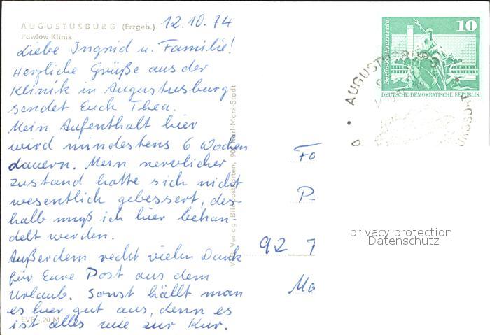 72350960 alte Postkarte Augustusburg Pawlow Klinik postalisch gelaufen Erhaltung siehe scans KatCode: 11110014177010