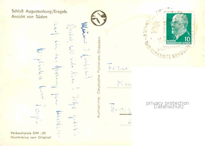 72633106 alte Postkarte Augustusburg Schloss Ansicht von Sueden postalisch gelaufen Erhaltung siehe scans [FriedD77] KatCode: 11110014177010