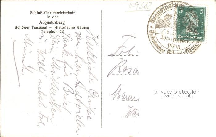 42320366 alte Postkarte Augustusburg Schloss Gartenwirtschaft postalisch gelaufen Erhaltung siehe scans KatCode: 11110014177010