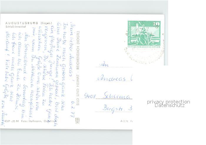 72384216 alte Postkarte Augustusburg Schloss Innenhof postalisch gelaufen Erhaltung siehe scans KatCode: 11110014177010