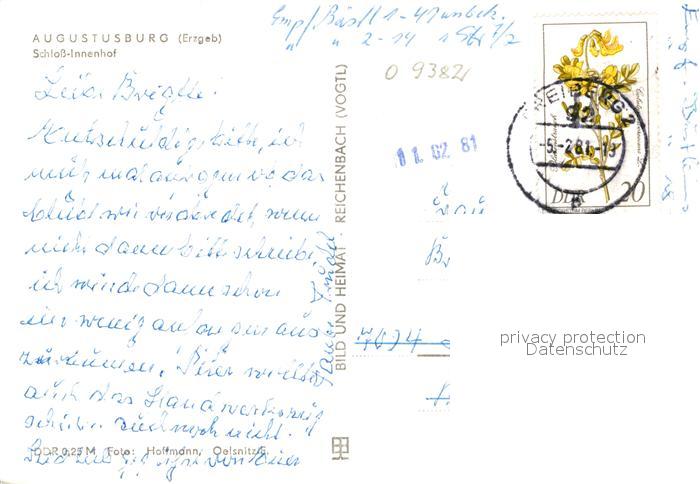 72917324 alte Postkarte Augustusburg Schloss Innenhof postalisch gelaufen Erhaltung siehe scans [PaolaD17] KatCode: 11110014177010