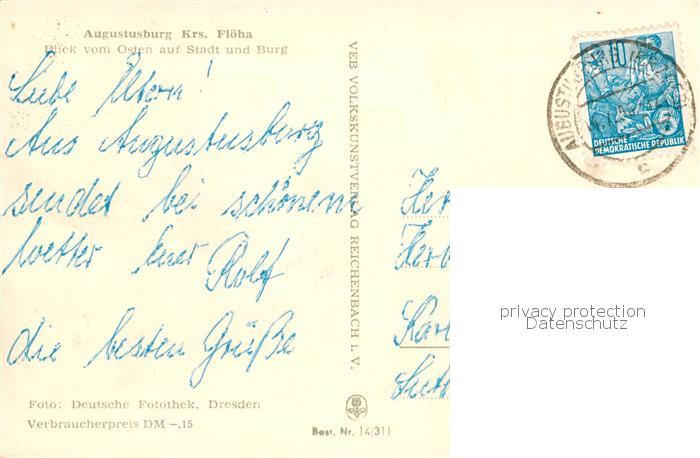 73801658 alte Postkarte Augustusburg Stadt und Burgblick postalisch gelaufen Erhaltung siehe scans [WerneD78] KatCode: 11110014177010