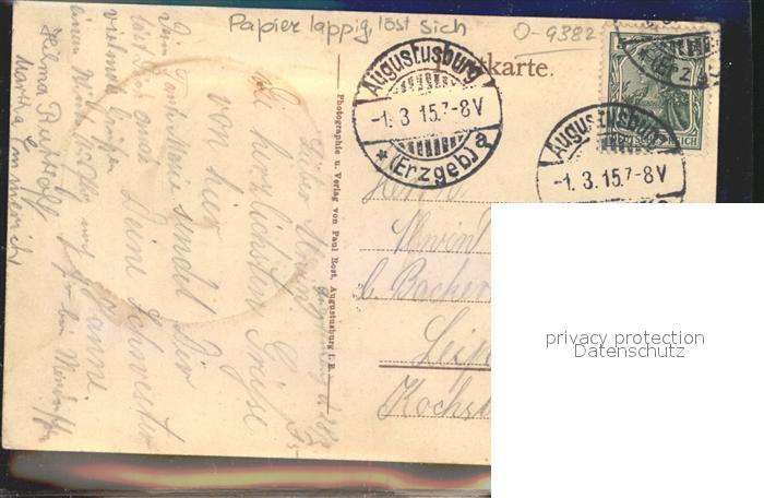 42324249 alte Postkarte Augustusburg Stadtbild im Winter Luftkurort postalisch gelaufen Erhaltung siehe scans KatCode: 11110014177010