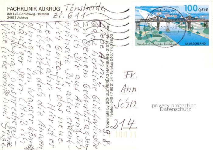 72953699 alte Postkarte Aukrug Fachklinik der LVA Schleswig Holstein Details postalisch gelaufen Erhaltung siehe scans [WerneD78] KatCode: 11110001058009
