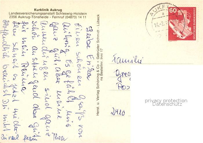 73119761 alte Postkarte Aukrug Toensheide Kurklinik Aukrug postalisch gelaufen Erhaltung siehe scans [LiesaD40] KatCode: 11110001058009