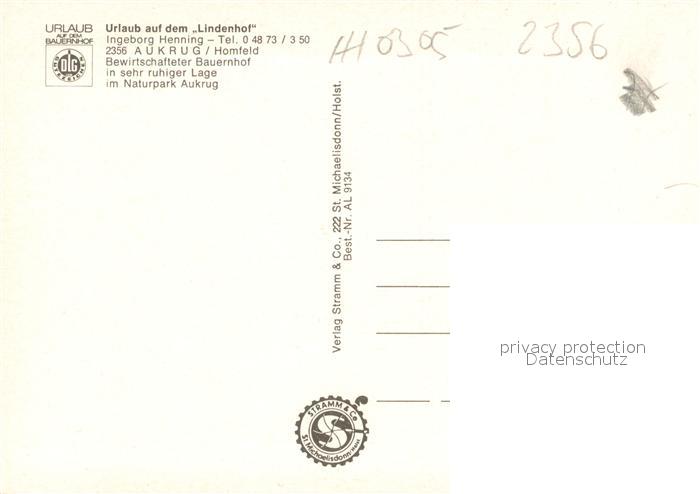 73643170 Aukrug Urlaub auf dem Lindenhof Pferdekoppel Obstwiese postalisch nicht gelaufen Erhaltung siehe scans [WerneD78] KatCode: 11110001058009