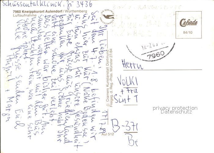 72235663 alte Postkarte Aulendorf Fliegeraufnahme postalisch gelaufen Erhaltung siehe scans KatCode: 11110008436008