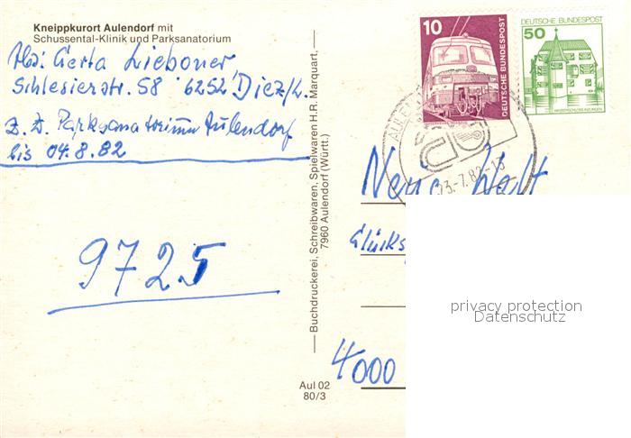 73083363 alte Postkarte Aulendorf Fliegeraufnahme Schussental Klinik postalisch gelaufen Erhaltung siehe scans [KathaD81] KatCode: 11110008436008