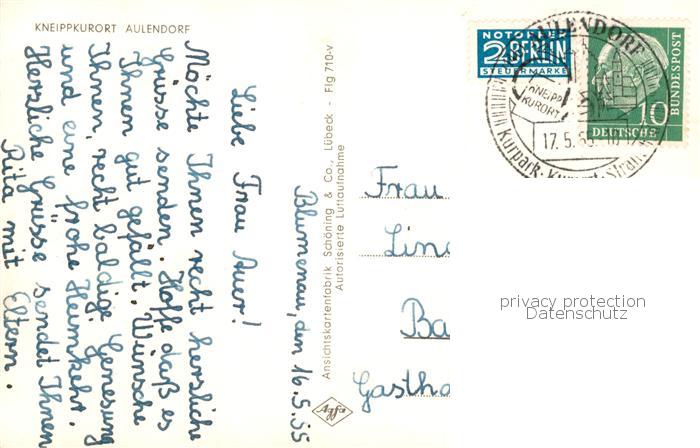73832584 alte Postkarte Aulendorf Fliegeraufnahme postalisch gelaufen Erhaltung siehe scans [WerneD78] KatCode: 11110008436008