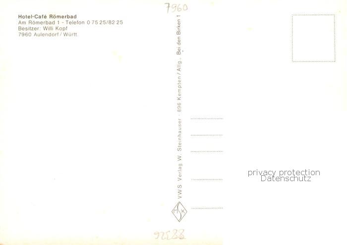 73843940 Aulendorf Hotel Roemberbad Gaststube Liegewiese postalisch nicht gelaufen Erhaltung siehe scans [WerneD78] KatCode: 11110008436008