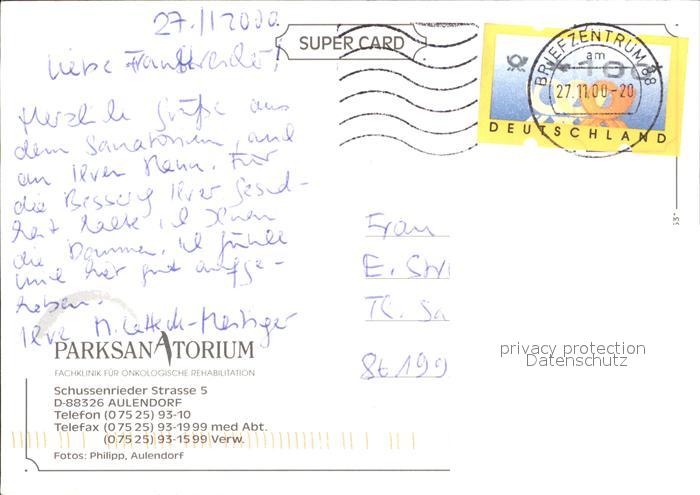 72599772 alte Postkarte Aulendorf Parksanatorium postalisch gelaufen Erhaltung siehe scans [FriedD77] KatCode: 11110008436008