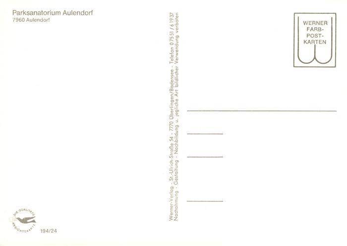 73921323 Aulendorf Parksanatorium postalisch nicht gelaufen Erhaltung siehe scans [WerneD78] KatCode: 11110008436008