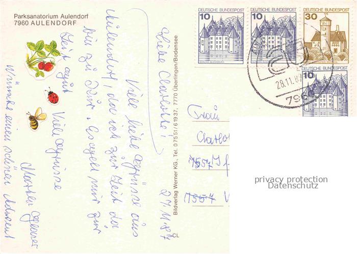 74053403 alte Postkarte Aulendorf Parksanatorium postalisch gelaufen Erhaltung siehe scans [WerneD78] KatCode: 11110008436008