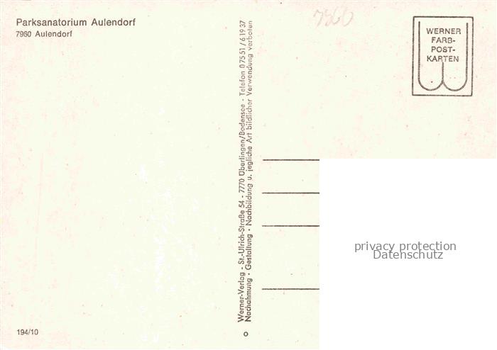 74053398 Aulendorf Parksanatorium postalisch nicht gelaufen Erhaltung siehe scans [WerneD78] KatCode: 11110008436008