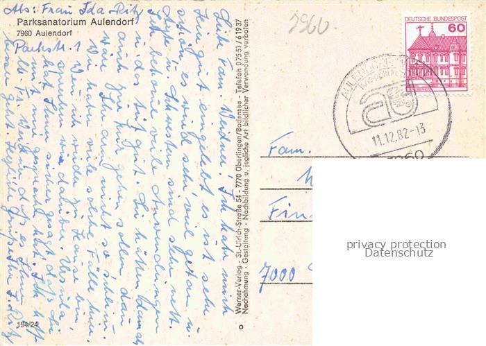 74053394 alte Postkarte Aulendorf Parksanatorium postalisch gelaufen Erhaltung siehe scans [WerneD78] KatCode: 11110008436008