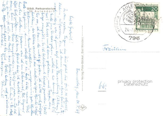 73865336 alte Postkarte Aulendorf Parksanatorium postalisch gelaufen Erhaltung siehe scans [WerneD78] KatCode: 11110008436008