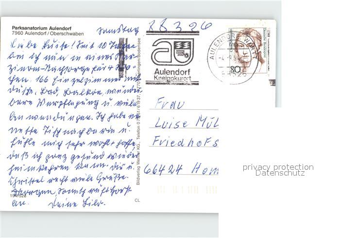 72023319 alte Postkarte Aulendorf Parksanatorium Aulendorf postalisch gelaufen Erhaltung siehe scans KatCode: 11110008436008