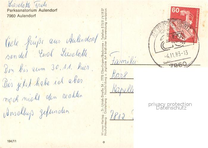 73726757 alte Postkarte Aulendorf Parksanatorium Empfangshalle Speisesaal Hallenbad postalisch gelaufen Erhaltung siehe scans [FriedD77] KatCode: 11110008436008