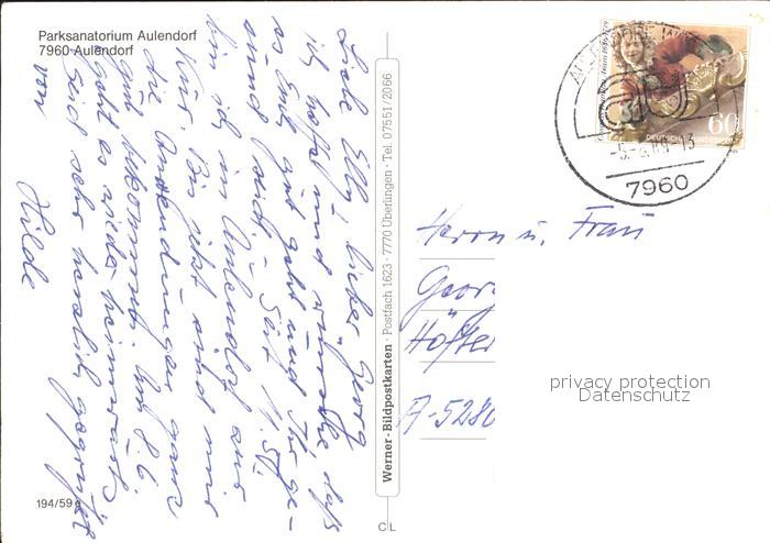 71947522 alte Postkarte Aulendorf Parksanatorium Hallenbad Restaurant Empfangshalle postalisch gelaufen Erhaltung siehe scans KatCode: 11110008436008
