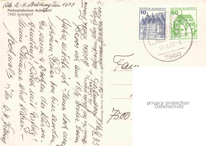 74053402 alte Postkarte Aulendorf Parksanatorium Plastik postalisch gelaufen Erhaltung siehe scans [WerneD78] KatCode: 11110008436008