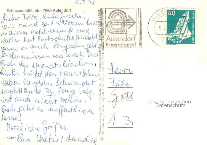 73762749 alte Postkarte Aulendorf Schussentalklinik Aufenthalts und Speiseraum Hallenbad postalisch gelaufen Erhaltung siehe scans [FriedD77] KatCode: 11110008436008
