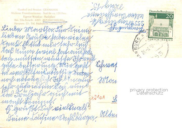 73837543 Aulhausen Gasthof Pension Germania postalisch nicht gelaufen Erhaltung siehe scans [FriedD77] KatCode: 11110006439013