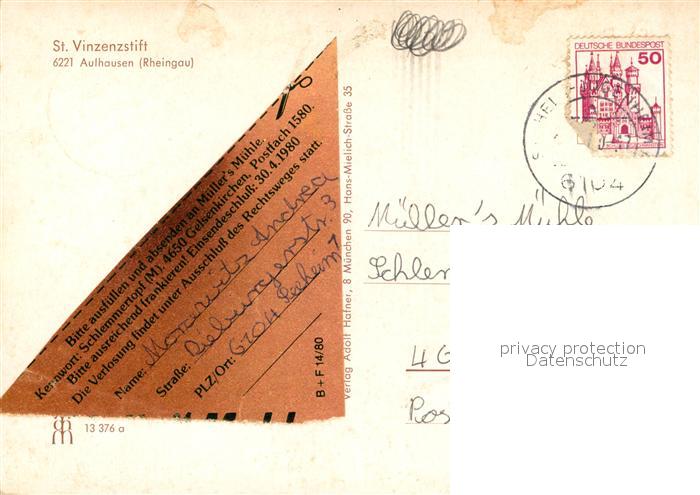 73310758 alte Postkarte Aulhausen St Vinzenzstift postalisch gelaufen Erhaltung siehe scans [FriedD77] KatCode: 11110006439013