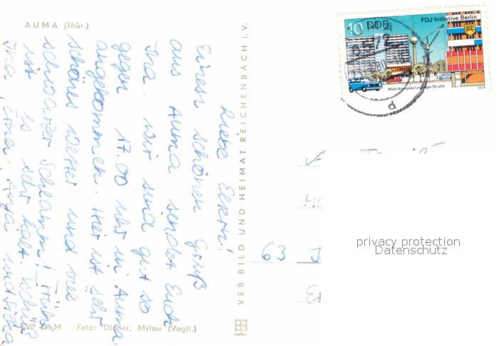72635997 alte Postkarte Auma-Weidatal Ortsansicht mit Kirche postalisch gelaufen Erhaltung siehe scans [FriedD77] KatCode: 11110016076002
