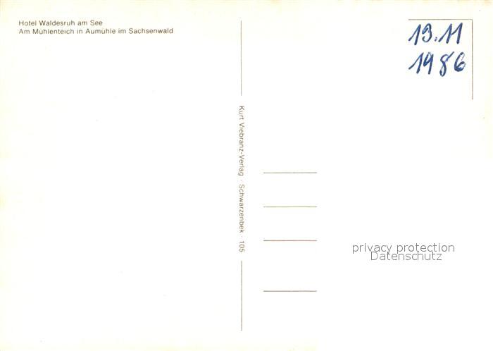 73204512 Aumuehle Lauenburg Hotel Waldesruh am See Muehlenteich postalisch nicht gelaufen Erhaltung siehe scans [FriedD77] KatCode: 11110001053003