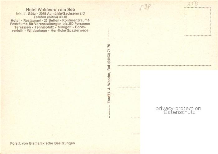 73569351 Aumuehle Lauenburg Hotel Waldesruh am See postalisch nicht gelaufen Erhaltung siehe scans [PaolaD17] KatCode: 11110001053003