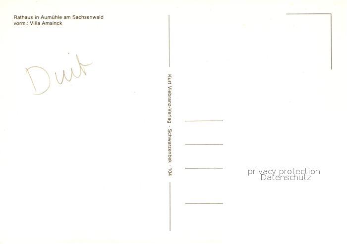 72934664 Aumuehle Lauenburg Rathaus Villa Amsinck postalisch nicht gelaufen Erhaltung siehe scans [FriedD77] KatCode: 11110001053003