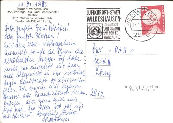72579419 alte Postkarte Aumuehle Wildeshausen Kurpark Kur und Fitnesscenter Seehof Hotel Restaurant Sonnenuntergang postalisch gelaufen Erhaltung siehe scans [FriedD77] KatCode: 11110003458014