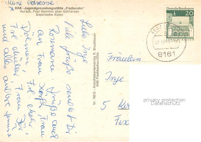73654326 alte Postkarte Aurach Hammer DAK Jugendgesundungsstaette Fischeralm postalisch gelaufen Erhaltung siehe scans [WerneD78] KatCode: 11110009182114